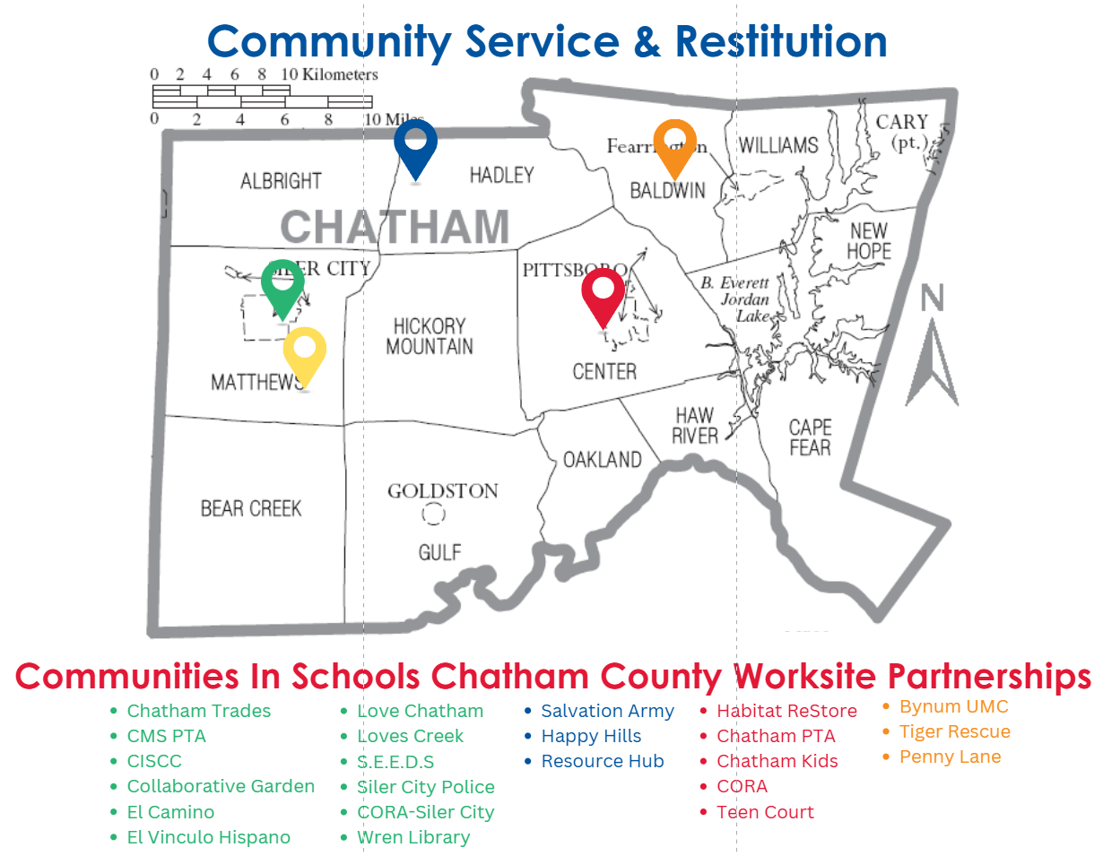 Since 2011, our Community Service & Restitution (CSR) program, led by Coordinator Lydia Miller, has been reducing repeat juvenile offenses by pairing accountability with opportunity. Each year, CISCC coordinates services for roughly 50 Chatham County youth through this transformative program.
